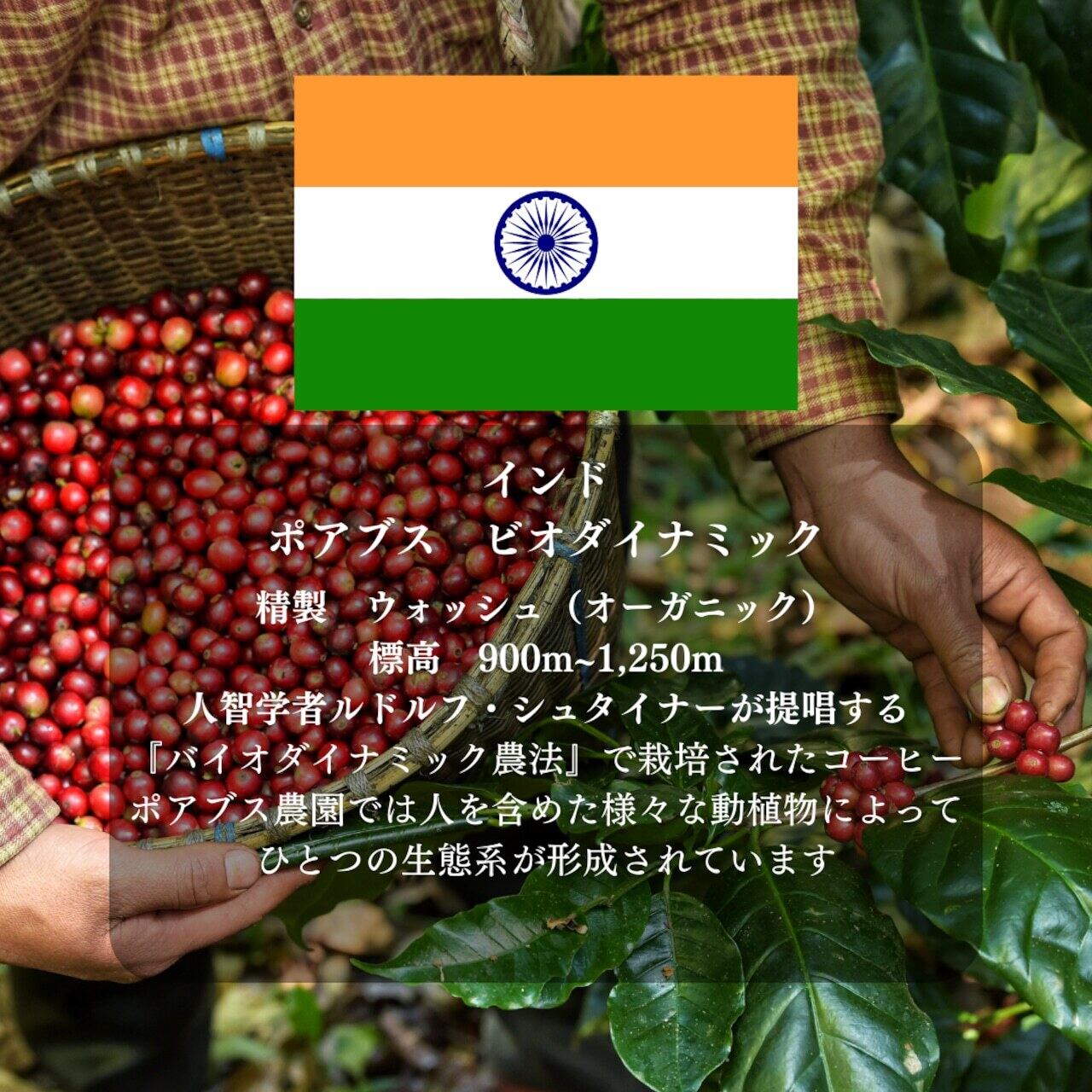 農園全体をひとつの生態系として捉える有機農法の一種、バイオダイナミック農法によって栽培されたインドのコーヒーです。